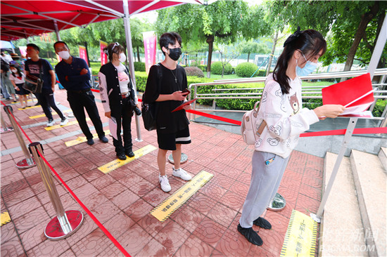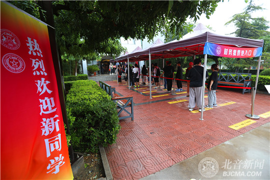 学院分开设置了独立的入口和出口,有效调控进校人员数量。凡符合来校条件的新生及家长在学校正门出示行程绿码、健康绿码、48小时内核酸证明,再经测温无异常后方可进入校园。进入报到、缴费大厅时,严格测温、严控人数,严守一米线,各个区域配置消毒液、一次性口罩,以备有需要学子使用。