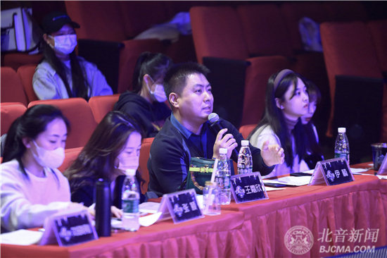 播音主持系主任伊楠老师在最后环节进行总结点评,他对2021级新生在比赛中的优秀表现给予了充分肯定,同时也指出,很多同学折在了第一轮比赛中搜狐新闻“真人播报”的拉票上,在这样的环节吃亏实属不该,要引以为鉴。
