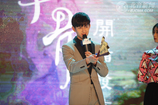 发布会上,马可作为【花千骨】中的杀阡陌角色,进行角色再现