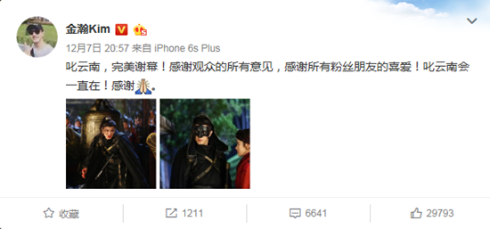金瀚微博感谢粉丝