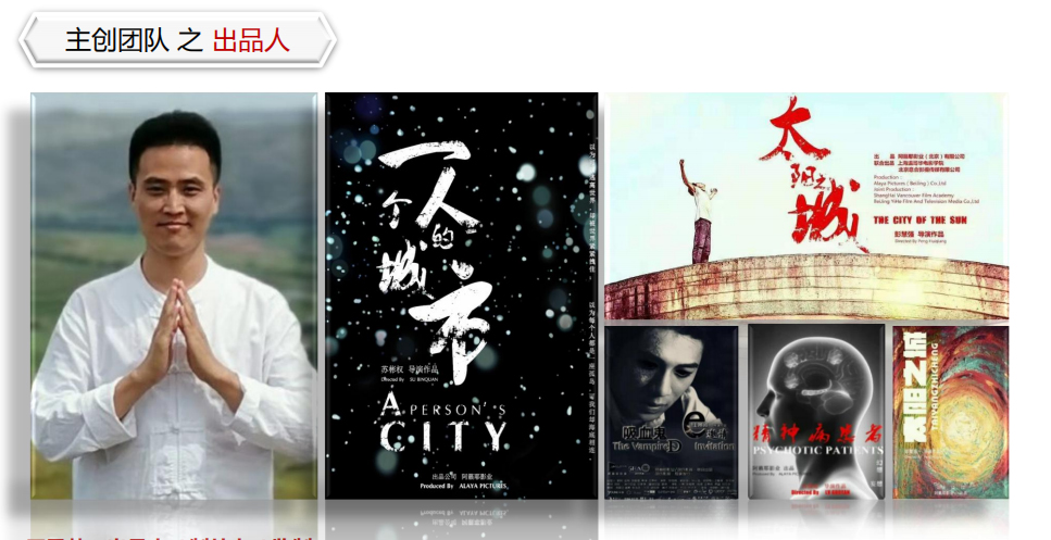 阿籁耶影业(北京)有限公司创始人,毕业于中央民族大学09级艺术管理专业,北京现代音乐研修学院08级影视戏剧学院表演系;制片作品:2011年新媒体影片《永远的寂静》出品人、制片人、导演;2013年新媒体影片《吸血鬼的邀请》出品人、导演;2014年获奖短片《两室》执行导演;2015年军事短片《愤怒的子弹》出品人、制片人、导演;院线电影《一个人的城市》出品人、制片人、监制;2017年短片《精神病患者》出品人、制片人、监制;2018年院线电影《太阳之城》出品人,制片人。