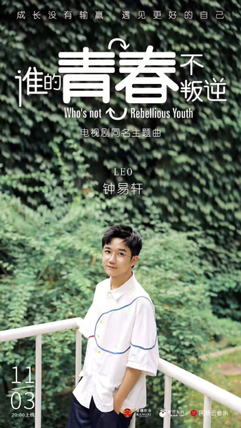值得一提的是,电视剧同名主题曲《谁的青春不叛逆》由北京现代音乐研修学院音乐科技学院2018级学生、《明日之子》第一季九大厂牌选手钟易轩倾情献唱。歌曲中钟易轩用独特的嗓音,将青春里的叛逆、青春里的迷茫与珍贵展现得淋漓尽致,为剧情强力加分,也深受歌迷的喜爱。