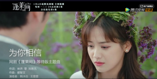 近日,由王奕丁执导,白宇、郑湫泓、季肖冰、陈意涵、李明德等主演的都市爱情剧《蓬莱间》在腾讯视频热播,该剧等待版主题曲《为你相信》由北京现代音乐研修学院毕业生、流行乐男歌手韩沐伯与青年女歌手王霏霏共同演唱,目前该歌曲MV已经上线。
