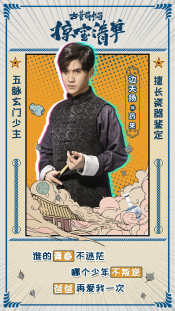 由韩青执导,屈楚萧、陈钰琪领衔主演,李九霄、王珮寒 、代文雯、北音附中学子边天扬、边程等主演,田雨、李诚儒等特别出演的民国剧《古董局中局之掠宝清单》于7月21日在腾讯视频开播,边天扬、边程在剧中分别饰演五脉玄门少主药来、五脉红门少主刘一鸣。